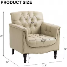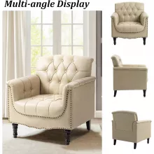 Transform your living space with this Modern Faux Leather Accent Chair — a perfect blend of classic charm and modern comfort. Designed with elegant rolled arms, tufted details, and nailhead trim, this chair brings sophistication to any room. The warm wood legs beautifully complement the rich faux leather upholstery, creating a statement piece that feels as good as it looks.