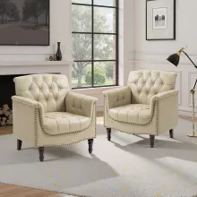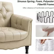 - Elegant Design: Tufted faux leather, rolled arms, and nailhead trim bring a touch of timeless sophistication.