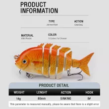 Turn every cast into a chance at the catch of a lifetime. These multi-jointed fishing lures are designed to mimic the real motion of injured baitfish, swimming with smooth, natural movement thanks to their 6-segment articulated body. At just over 3 inches long and weighing half an ounce, they sink with purpose, glide with precision, and seduce even the most cautious predators. Built to imitate the natural wiggle of a real fish, they move with an S-shaped swimming motion at any speed, making them irresistible in both calm waters and aggressive conditions.