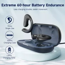 Love the open-ear design! I can enjoy my music and still be aware of my surroundings – perfect for outdoor runs. The sound quality is amazing too - rich bass and clear treble without any leakage. They’re also super comfortable to wear thanks to their ergonomic fit. Plus with a battery life that lasts up to sixty hours, I don’t have to worry about them dying on me mid-run.