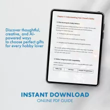 Stop second-guessing your gift choices and start giving with confidence. Download Passion-Packed Presents: The Guide to Gifting for Hobby Lovers today and unlock a world of inspiration, strategy, and creativity. It’s time to make every present as passionate as the hobbies your friends love!