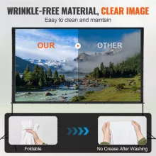 Designed for ultimate convenience, this portable projector screen is perfect for both indoor and outdoor use. Its 4K HD resolution ensures clear, bright images in any lighting, while the wide 160° viewing angle lets everyone enjoy the action, no matter where they are seated. With an easy-to-use stand, simple setup process, and sturdy design, it’s built to perform under any conditions. Plus, the wrinkle-free fabric and easy maintenance mean you can enjoy stunning visuals for years to come.