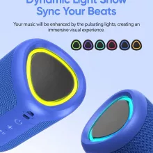 The speaker also features a 30% longer playback time than average, keeping your music going longer without constant recharging. And with its compact 4.25 x 2.99 inch design and detachable lanyard, it’s built for portability—perfect for outdoor adventures, travel, picnics, and poolside fun. Plus, the dynamic light show syncs to your beats, adding a visual touch that turns every track into a full sensory experience.