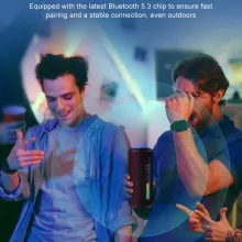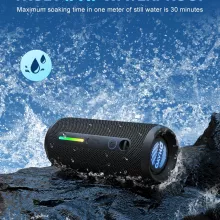 With a sleek and durable design, this speaker is built to withstand any adventure. Rated IPX7 waterproof, it is perfect for poolside parties, beach trips, or even rainy day use, giving you the freedom to enjoy your favorite tracks without worry. The easy-to-use controls and Bluetooth 5.3 technology ensure seamless pairing with your devices, allowing you to connect quickly and start playing music in no time. Plus, the long battery life of up to 30 hours ensures your music will last all day and night!