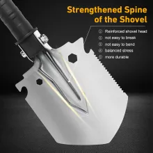 Its military-grade build gives you peace of mind. It’s strong enough to handle tough tasks, yet light enough to carry on long treks. Built for survival, crafted for convenience – this shovel has your back when it matters most.