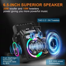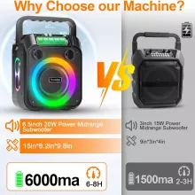Set the mood with interactive RGB lighting that syncs to your music’s beat. Play your favorite tracks via USB, TF card, AUX input, or a 6.35mm mic jack — so your playlist never runs out of hits.