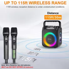 - Dual wireless microphones for effortless duets