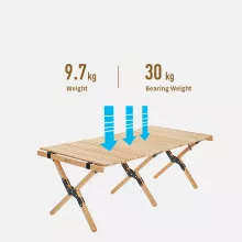 This table’s durable build supports up to 66 pounds, while remaining lightweight and easy to carry at just under 21.4 pounds. The folding design ensures a compact storage footprint, ideal for travel, camping, and outdoor events. Strong iron connectors add long-lasting durability and a stable base, even on uneven ground. Plus, its natural wood finish brings warmth and style to any outdoor setup.