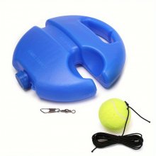 This tennis trainer set includes a durable base made of PE (polyethylene) material and a high-quality elastic cord attached to a regulation-sized tennis ball. The blue base measures approximately 8.3 x 8.3 inches—perfect for portability and storage. Simply fill the base with water or sand for stability, and you’re ready to go. The built-in cord groove makes storage tidy and convenient.