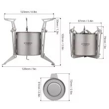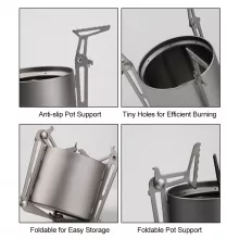 Constructed from durable titanium, this stove delivers excellent heat efficiency while being corrosion-resistant and ultra-light at just 2.5 oz. With smart design features like tiny holes on top for optimized fuel use, and foldable legs and pot supports for compact storage, this alcohol burner is built for convenience and efficiency. It even includes a lid that doubles as a fire cover, allowing you to extinguish the flame safely and quickly.