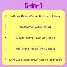 This product exceeded all my expectations! Its simplicity combined with variety makes learning, applying & reinforcing positive habits less daunting, more fun than ever before! Whether it’s the 10-step positivity checklist that helps reset your mindset or the ready-to-use affirmations that have become an essential part of my self-care routine, each tool is well-crafted to bring about a significant change in how you think, speak to yourself & show up each day. I highly recommend this bundle for anyone looking to build a brighter mind.