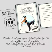 Turn your workouts into powerful, fight-inspired training sessions with the Power Moves Martial Arts Fitness Ebook. This digital guide is packed with martial arts inspired fitness drills designed to build strength, speed, agility, and confidence—no matter your fitness level. Whether you’re new to fitness or looking to add intensity and variety, this resource will help you train like a fighter while staying safe, motivated, and consistent.