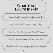 This ebook is perfect for fitness enthusiasts, martial arts beginners, or anyone seeking dynamic training that combines strength, speed, and cardio in one workout. Unlike generic fitness guides, it blends structured martial arts drills with practical AI support, giving you a unique system to stay consistent and track your growth.