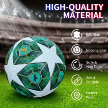 Whether you’re gearing up for a high-stakes game or refining your footwork during practice, this soccer ball is your ideal companion. It offers an excellent touch, a responsive bounce, and flight stability that mirrors pro-level equipment. With no air inflation required, it’s always ready to roll whenever you are.