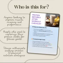 Maximize your workout gains with the Protein Before & After Workout Checklist—a practical and easy-to-follow digital guide designed to help you optimize your shake timing, protein choices, and recovery strategies. Whether you’re building muscle, losing weight, or improving strength, this checklist provides expert advice tailored to your fitness goals. Say goodbye to confusion around when to drink your shake, what protein to choose, and how to boost your performance. Get ready to take your fitness journey to the next level!