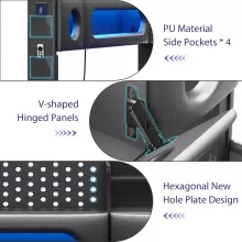 Designed for comfort and convenience, this bed frame comes with a unique storage headboard that features a shelf and spacious hidden compartment, perfect for storing bedding, books, and personal items. The two small storage pockets on each side provide easy access to essentials like remote controls and glasses. Plus, the LED lights feature over 60,000 customizable colors that can be controlled via a mobile app or remote, allowing you to create the perfect atmosphere for relaxation or entertainment.