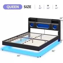 Transform your bedroom into a modern oasis with our Queen Size Floating Bed Frame with Storage and LED Lights. This innovative platform bed features a striking floating design that visually elevates your space while providing practicality and style. With dimensions of 86 inches in length, 60 inches in width, and 44 inches in height, this bed frame is not just a place to sleep, but a statement piece that enhances your entire décor.