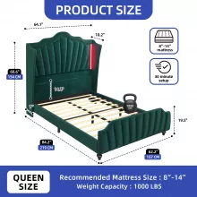 Transform your bedroom into a space of elegance and comfort with this stunning Queen Size Velvet Platform Bed Frame. Designed with a 60-inch tall wingback headboard and a coordinating footboard, this bed is a statement piece that blends luxury, durability, and modern functionality. Wrapped in soft, plush green velvet, it brings a touch of sophistication and warmth to your room, making it perfect for those who value both style and comfort.