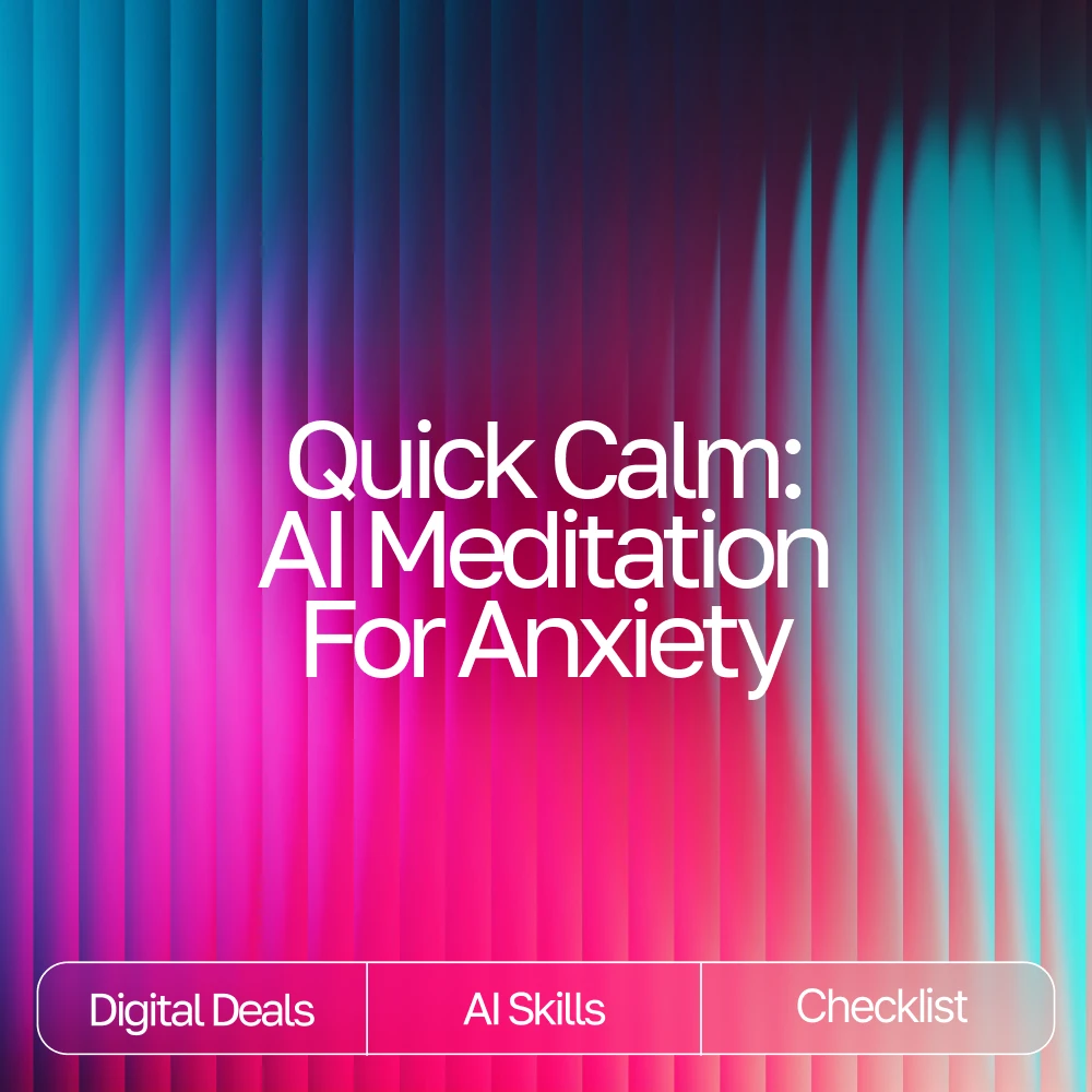Find your calm in minutes with Quick Calm: AI Meditation for Anxiety, a soothing digital checklist designed to help you breathe easier, settle your mind, and feel grounded fast. This easy-to-follow guide shows you exactly how to use modern AI tools to create a personalized meditation experience—anytime, anywhere. Whether you’re new to mindfulness or simply want a quicker way to reset your thoughts, this digital download blends technology with tranquility to bring you relief you can actually feel.