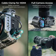 - Tool-free HDMI cable clamp secures your connection for uninterrupted shooting.