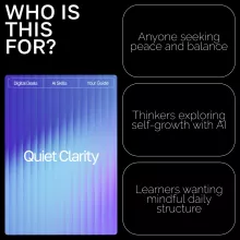 Unlike typical self-help books, Quiet Clarity blends thoughtful psychology with AI innovation to make reflection more guided and accessible. You’ll learn how to collaborate with technology to enhance self-awareness without losing authenticity or depth.