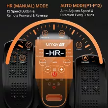 This compact elliptical features both Auto and Manual modes, making it easy to customize your workout. In Manual mode, you can select from 12 speed levels, choose forward or backward movement, and set exercise times between 15 and 30 minutes. Auto mode offers pre-programmed variations with automatic changes in speed and direction, ideal for hands-free, effortless exercise. A remote control and built-in control buttons make adjustments easy—no bending required.