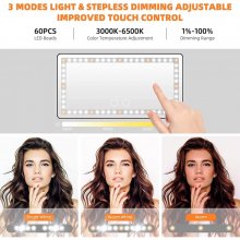 With 60 high-quality LED lights, including 48 cool white and 12 warm yellow lights, this mirror provides customizable illumination. The two touch sensors allow you to toggle between lighting modes or adjust brightness with a simple long press, ensuring your makeup always looks flawless. The memory function conveniently recalls your last used settings for added ease.