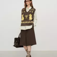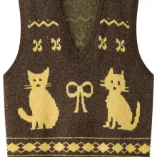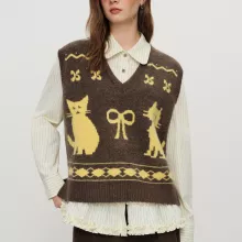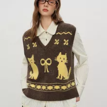 Beyond its stylish American-retro vibe, this vest stands out for its unique kitten-jacquard design and carefully balanced fabric blend that combines softness, flexibility, and lasting durability. The loose-fitting pattern ensures a relaxed silhouette, while the pullover style keeps dressing effortless. With lengths ranging from approximately 41.7 in to 46.5 in depending on size, it offers comfortable coverage while maintaining a flattering shape.