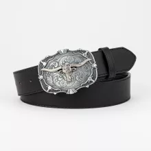 • Western Bull Head Buckle: A detailed metal bull head centerpiece that adds character and boldness to any look.