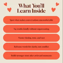 - Chapter 4: Building trust after awkward honesty, with follow-up strategies and reflection tools