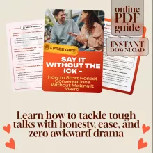 Don’t let the “ick factor” hold you back. Start having honest conversations without making them weird. Download your copy of Say It Without the Ick – How to Start Honest Conversations Without Making It Weird today and discover how powerful, simple, and freeing honest communication can be.