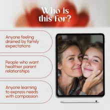 This guide is for adult children who love their parents but feel overwhelmed, pressured, or controlled. It’s also for anyone who struggles with guilt when setting limits and wants a healthier, more balanced relationship. Unlike other resources, this guide goes beyond theory with prompts, case studies, and scripts—making it both practical and compassionate.