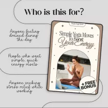Feeling drained by midday? Simple Yoga Moves to Boost Your Energy is a beautifully designed digital download created to help you restore focus, release tension, and feel more energized in just a few minutes. Whether you’re working from home, at the office, or juggling a busy lifestyle, this guide gives you simple, practical yoga routines that fit right into your day. With easy-to-follow flows, science-backed explanations, and bonus tools to enhance your practice, this eBook is your go-to solution for beating fatigue naturally.