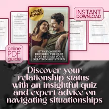 If you’ve ever wondered whether you’re truly in a relationship or just stuck in a “situationship,” this digital guide is exactly what you need. “Situationships Decoded: The Quiz That Reveals Your Relationship Status” is a comprehensive tool that helps you gain clarity on your romantic life by offering a fun and insightful quiz. Designed to help you understand your relationship status and navigate the complexities of modern dating, this guide is your first step to achieving a more confident and informed approach to your love life.