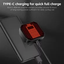 Crafted from durable ABS and polycarbonate, the tail light weighs just 1.02 oz, making it ultra-light without sacrificing strength. A built-in 400mAh rechargeable battery powers your rides, and the IPX6 waterproof rating means you never have to worry about rain or splashes. It’s more than a light – it’s your smart riding companion.