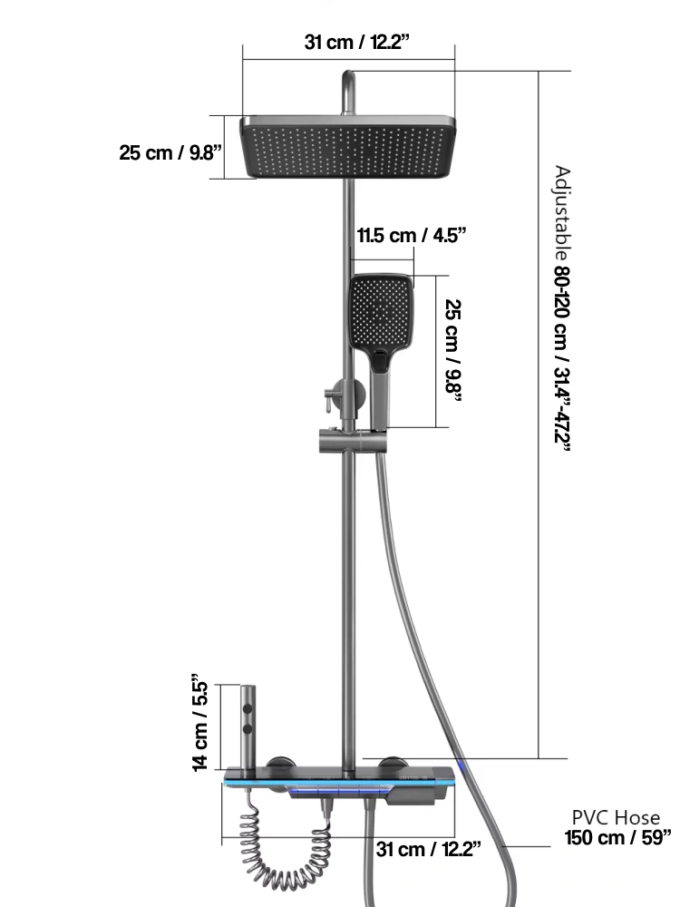 This innovative shower system excels in creating personalized wellness experiences. It’s perfect for modern bathroom renovations where you want to incorporate smart home technology. The digital display makes it ideal for families with children or elderly members who benefit from precise temperature control and safety features. The rainfall showerhead is wonderful for stress relief after long days when you need thorough relaxation. The atmosphere lighting is excellent for creating mood-enhancing environments for both energizing morning routines and relaxing evening showers. It’s also great for tech enthusiasts who appreciate smart features that enhance daily routines.
