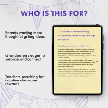 Unlike generic gift lists, Smart Surprises: Gifts for 8-Year-Olds helps you understand the “why” behind every recommendation. You’ll learn to think like a child development expert and a creative gift strategist combined. It’s more than just a guide — it’s a mindset shift for anyone who wants to make every present meaningful and memorable.