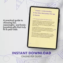 Finding the right gifts for 8 year olds can be tricky — they’re growing fast, full of curiosity, and developing their own unique personalities. Smart Surprises: Gifts for 8-Year-Olds is a beautifully crafted digital guide designed to make gift-giving joyful, thoughtful, and stress-free. Whether you’re a parent, grandparent, teacher, or family friend, this downloadable resource helps you understand what makes this age so special and how to choose presents that truly inspire, teach, and delight.