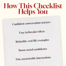 Want to walk into any room feeling confident, prepared, and ready to connect? Spark It Up is your go-to digital checklist packed with easy conversation starters that take the guesswork out of small talk. Whether you’re meeting new people, attending events, or simply looking for fun ways to break the ice, this instant download will give you a pocket-sized confidence boost. With a blend of timeless openers, playful humor, and even AI-powered tips, you’ll never run out of things to say again.
