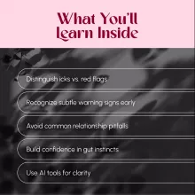 Don’t leave your peace of mind up to guesswork. Download Spotting the Signs Before They Matter — Your Go-To Guide for Icks and Red Flags today and take the first step toward building healthier, more confident relationships. Get your instant access now and start spotting the signs before they matter!
