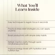 • Micro-Break Magic – The power of a 3-minute break every hour to recharge and refocus.