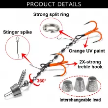 Unlike ordinary rigs, this one gives you full control over hook placement while preserving the lure’s swimming action. Its corrosion-resistant build and UV-painted trebles make it highly effective in low visibility and high-pressure fishing scenarios. With this rig, you’re not just increasing your chances—you’re ensuring results.