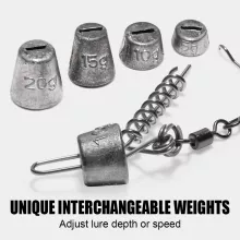 The rig features two razor-sharp treble hooks connected with different lengths of lead, allowing you to strategically position each hook for maximum coverage without affecting the bait’s natural action. The integrated coil spring corkscrew locks into soft baits effortlessly, giving you a rock-solid, secure mount in seconds. It’s the ideal setup when chasing hard-hitting species like pike, bass, trout, carp, and even ocean dwellers like tuna and halibut.