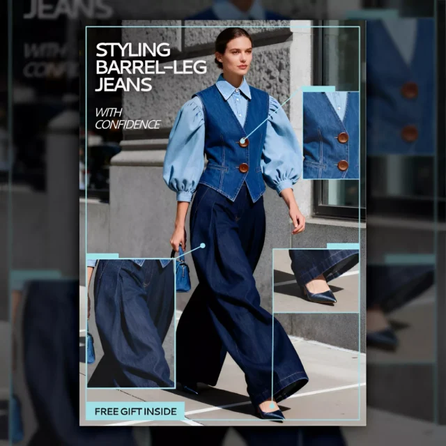 Unlike generic fashion advice, this guide focuses entirely on barrel-leg jeans with real-world outfit scenarios, styling logic, and confidence-building tips. It doesn’t just tell you what to wear—it explains why each look works, making it easier to recreate with pieces you already own.