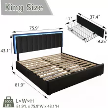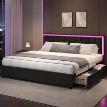 Enhance your bedroom with our Stylish King Bed Frame with Storage and RGB LED Lights. This impressive bed frame is designed not only for comfort but also for functionality, making it the perfect centerpiece for your sleeping space. With four spacious storage drawers, you’ll have plenty of room to keep bedding, clothing, and other essentials neatly organized and easily accessible.