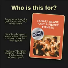 This isn’t just another fitness eBook—Tabata Blast is a comprehensive and interactive guide that’s packed with smart features to elevate your workouts. With AI-powered prompts, you can create workouts that adapt to your fitness level, track your progress, and stay motivated on your journey. You’ll also receive customized meal and recovery suggestions to fuel your performance and accelerate recovery, ensuring you’re getting the most out of every session.