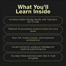 • Chapter 4: AI-Powered Tabata Prompts Generate personalized Tabata routines, track your progress, and access meal & recovery suggestions for a well-rounded fitness approach.