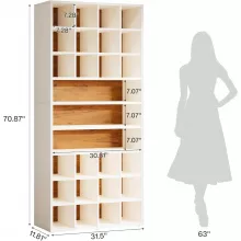 Maximize your space and elevate your home with our Tall 9-Tier Shoe Cabinet with LED Light. This elegant storage solution is designed to accommodate 24 to 32 pairs of shoes while maintaining a sleek and modern aesthetic. With dimensions of 31.5 inches deep, 11.81 inches wide, and 70.87 inches high, this cabinet is perfect for entryways, hallways, or bedrooms, keeping your footwear organized and accessible.