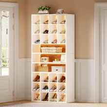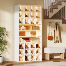 Don’t wait to enhance your living space! Add the Tall 9-Tier Shoe Cabinet with LED Light to your home and enjoy stylish organization and practicality every day. Order now to experience the perfect blend of modern design and functional living!