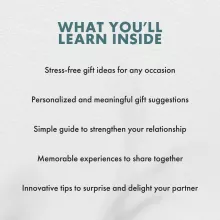 Designed to inspire and make gift-giving easier, this checklist includes categories that will make your partner feel cherished and loved. No more stress over what to get—whether you’re celebrating big milestones or simply wanting to show appreciation, this guide has everything you need. It’s more than just a list—it’s a way to create lasting memories together. Download it today and start planning your next perfect surprise!
